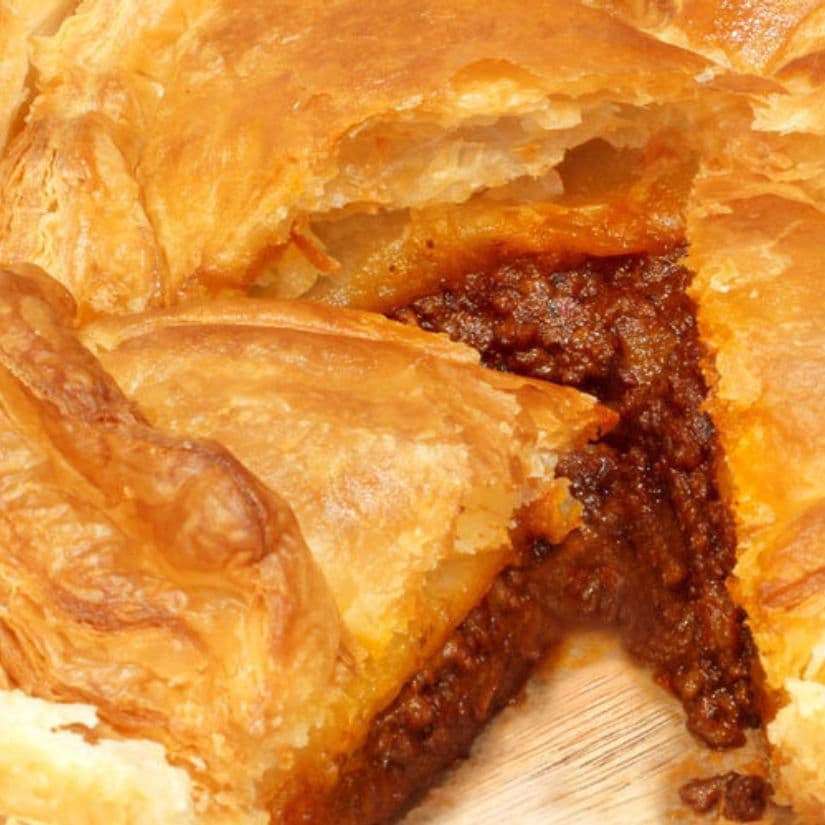 発酵バターの甘い香りが広がるサクサクのパイ生地と、フィリングが一体になる奥深く、優しい味わいのミートパイです。