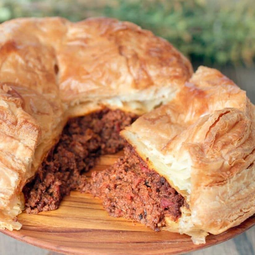 パイ、グルグルのミートパイをホールで