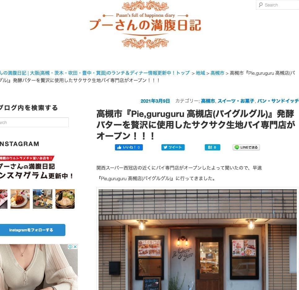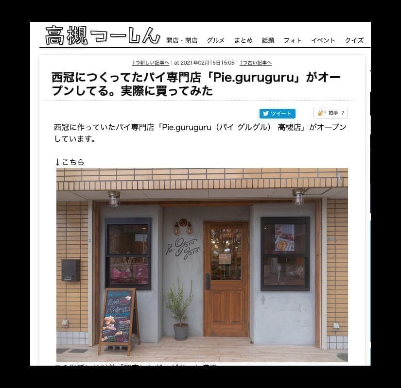 2020年9月のPie,guruguru香芝店オープン時から高槻店OPEN…様々なメディア様、個人ブロガー様に当店をご紹介頂きました。