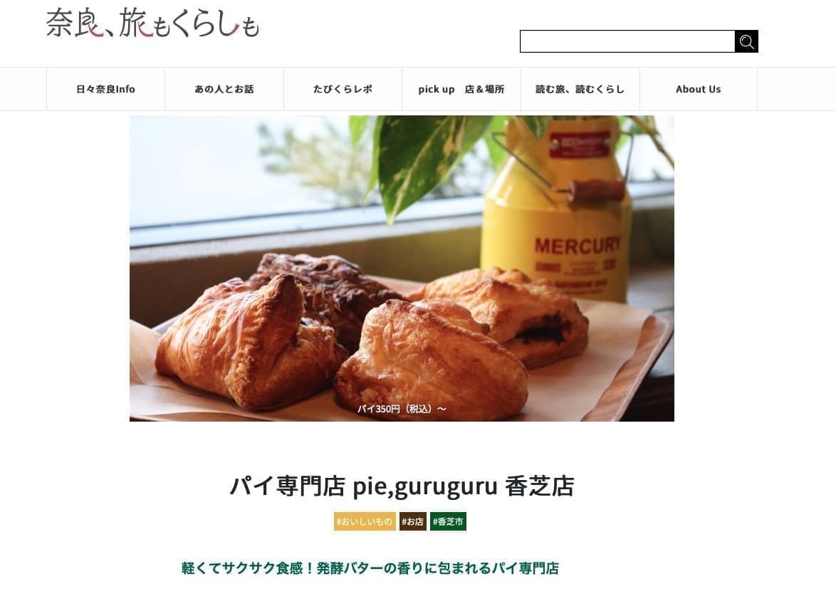 奈良の新しい情報サイト「奈良、旅もくらしも」さんに、Pie,guruguruを紹介して頂きました奈良の歴史や文化が日常にある奈良県民必見の読んでいることが楽しくなる〜奈良の新しい情報サイトさんです。