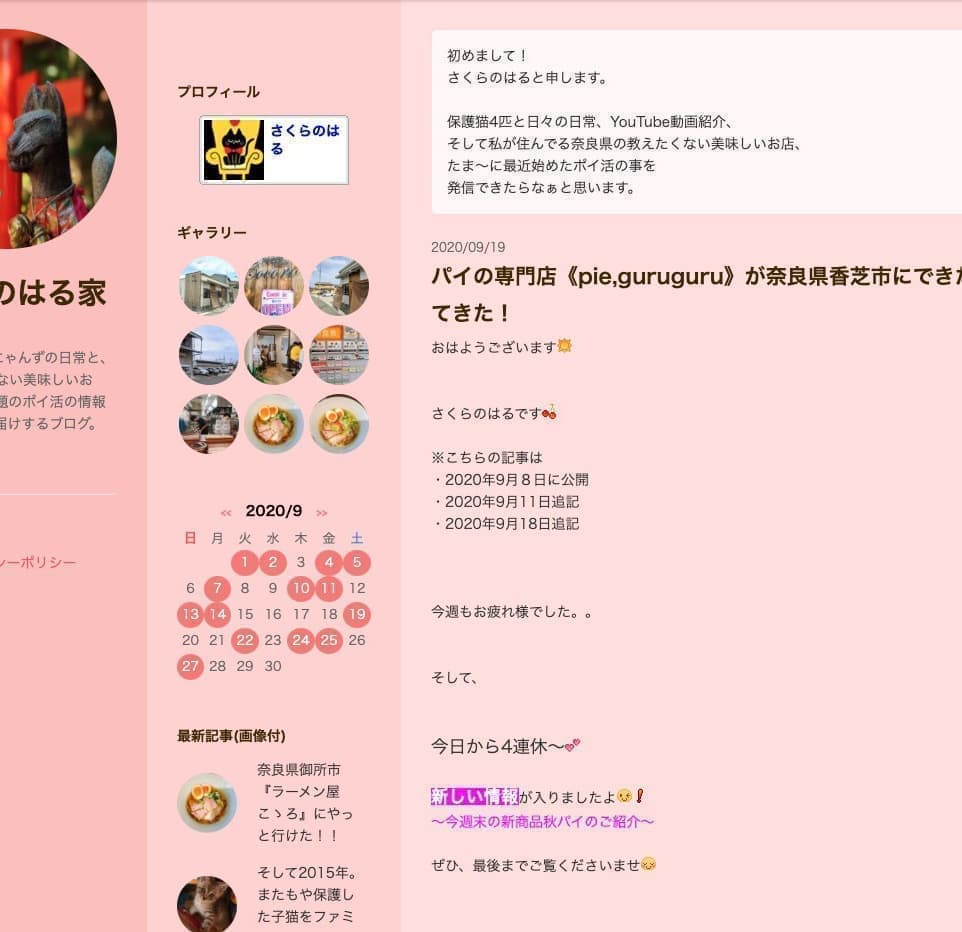 さくらのはる様の保護猫ちゃんとの日常や奈良のお気に入りのお店をご紹介されているブログです。奈良のグルメ情報も一件づつに詳細なお写真と供に紹介されている見ていて楽しいブログです。